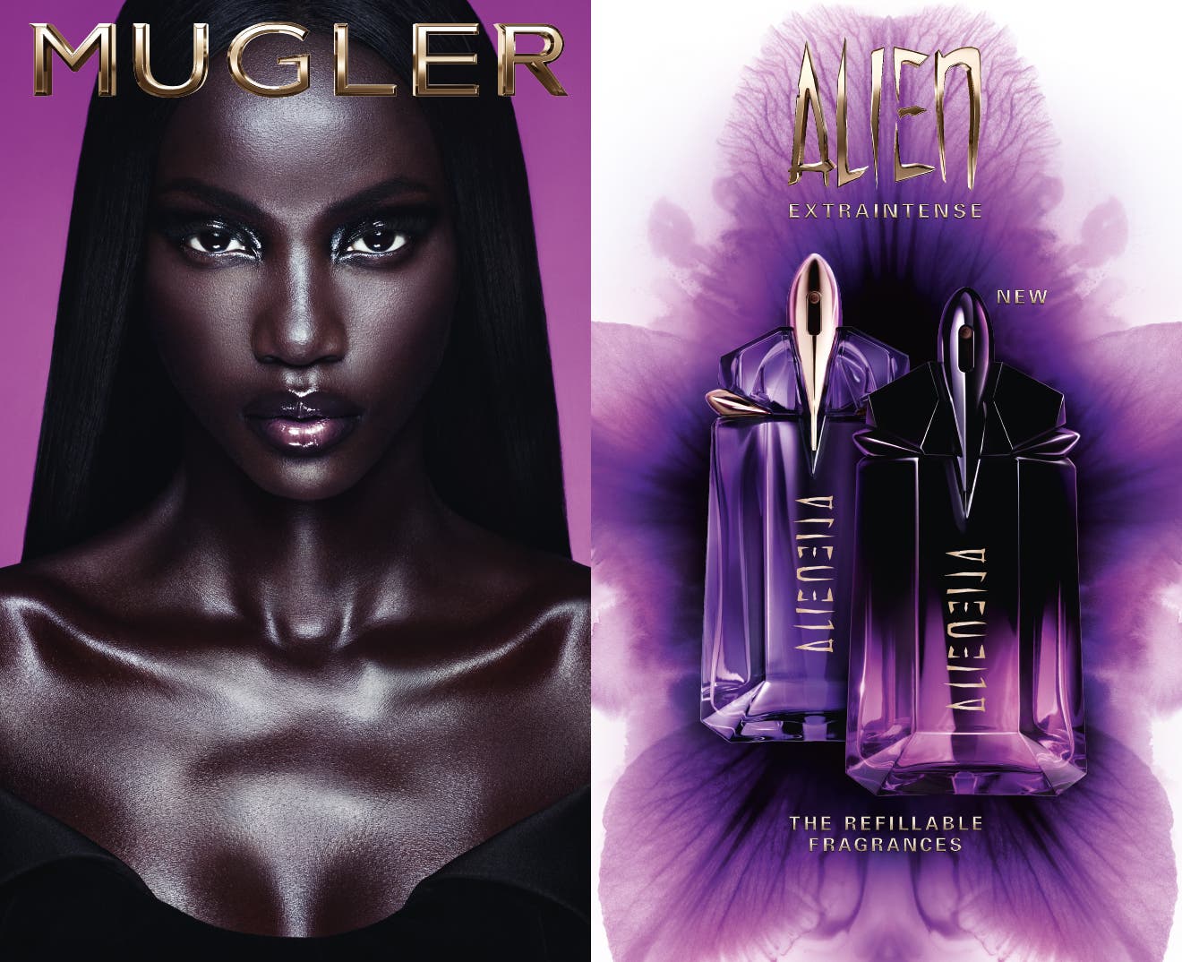 Angel er stadig Muglers mest berømte duft. Flasken ligner en iskrystalstjerne og har noter af patchouli, praline og chokolade. Siden da er flere andre dufte blevet lanceret for både mænd og kvinder, herunder herreduften Alien. Der findes også en Alien dameparfume, som dufter af jasmin, rav og træ. Flasken er let genkendelig på sit lilla design. \n\nMugler siger, at ideen med hans dufte er at transportere brugeren til en verden af luksus og glamour. Herreduften Alien har noter af kaffe og karamel og kan kombineres med en bodylotion og en deospray i samme duftserie. De smukke og futuristiske flasker bliver et smukt element i badeværelsesskabet og fungerer som små dekorative objekter. Parfumerne fås i størrelser på 25 ml og 30 ml, og den seneste udgave, Angel Nova, er også genopfyldelig. En lidt krydret duft fra mærket er A*Men, en maskulin og elegant duft, der blev lanceret i 1996.\n\nMugler understreger, at hans dufte er skabt til at føre brugeren ind i en verden af overdådighed og glamour. Alien for mænd indeholder noter af kaffe og karamel og kan suppleres med en bodylotion og deodorantspray i samme serie. De smukke og futuristiske flasker tilføjer et dekorativt touch til ethvert badeværelsesskab og fungerer som små kunstværker. Parfumerne er tilgængelige i 25 ml og 30 ml størrelser, og den nyeste version, Angel Nova, kan også genopfyldes. En anden krydret duft fra brandet er A*Men, en maskulin og elegant duft, der blev lanceret i 1996.