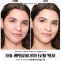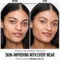 - Fullstørrelse pudderfoundation med byggbar dekning og naturlig finish