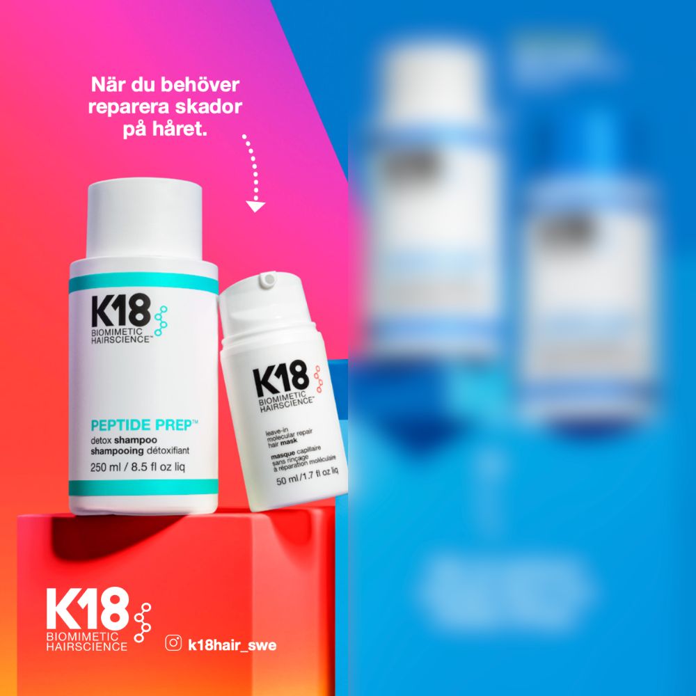 Vårt hår utsätts dagligen för påfrestningar som sol, styling och miljöpåverkan och det kan leda till skador på polypeptidkedjan – hårets grund. För att återställa hårets hälsa och styrka är K18 Peptide Prep Detox Shampoo och Leave-In Molecular Repair Hair Mask den ultimata duon.